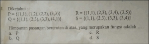 Himpunan pasangan berurutan berikut yang merupakan fungsi adalah: