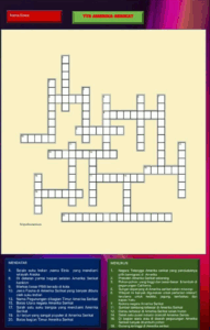 Teka-teki silang ini berisi soal-soal terkait informasi mengenai Benua Amerika baik dari aspek kenampakan alam, sosial, maupun budaya khususnya yang berkaitan dengan negara Amerika Serikat.
