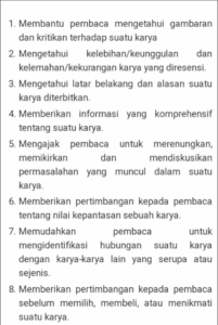 1. Membantu pembaca mengetahui gambaran dan kritikan terhadap suatu karya
